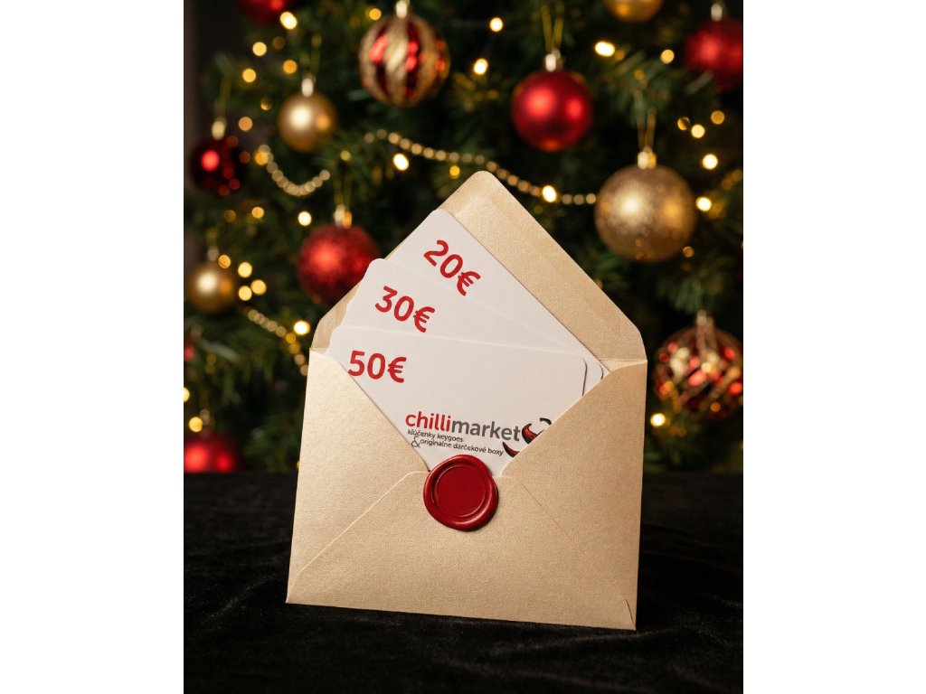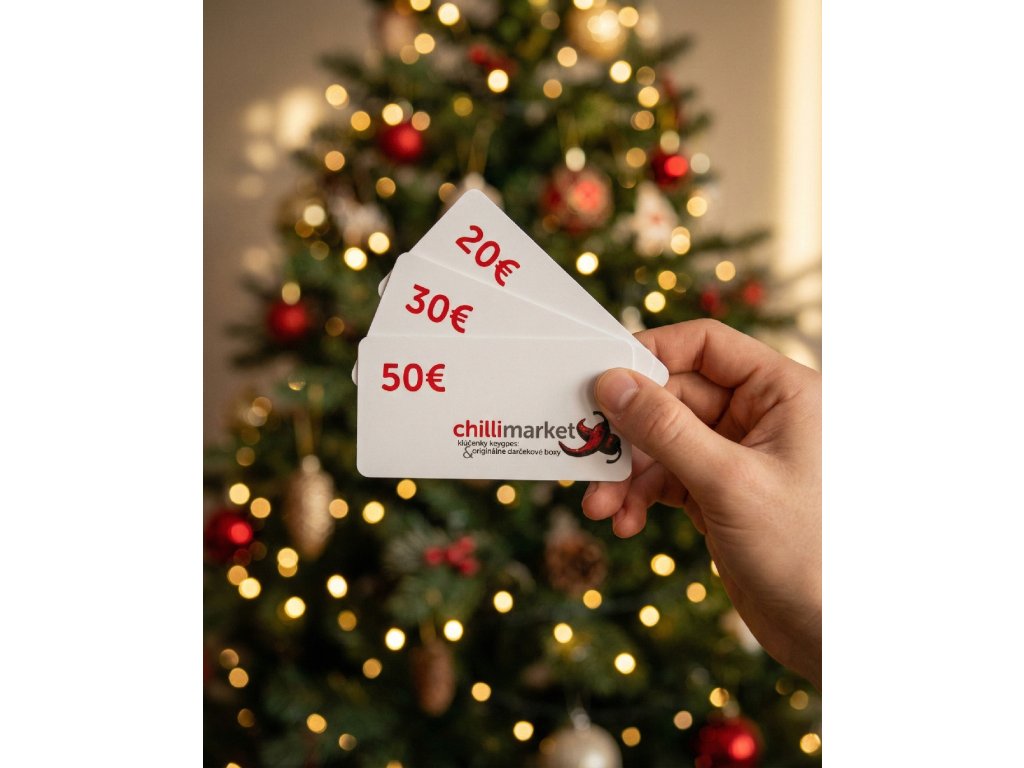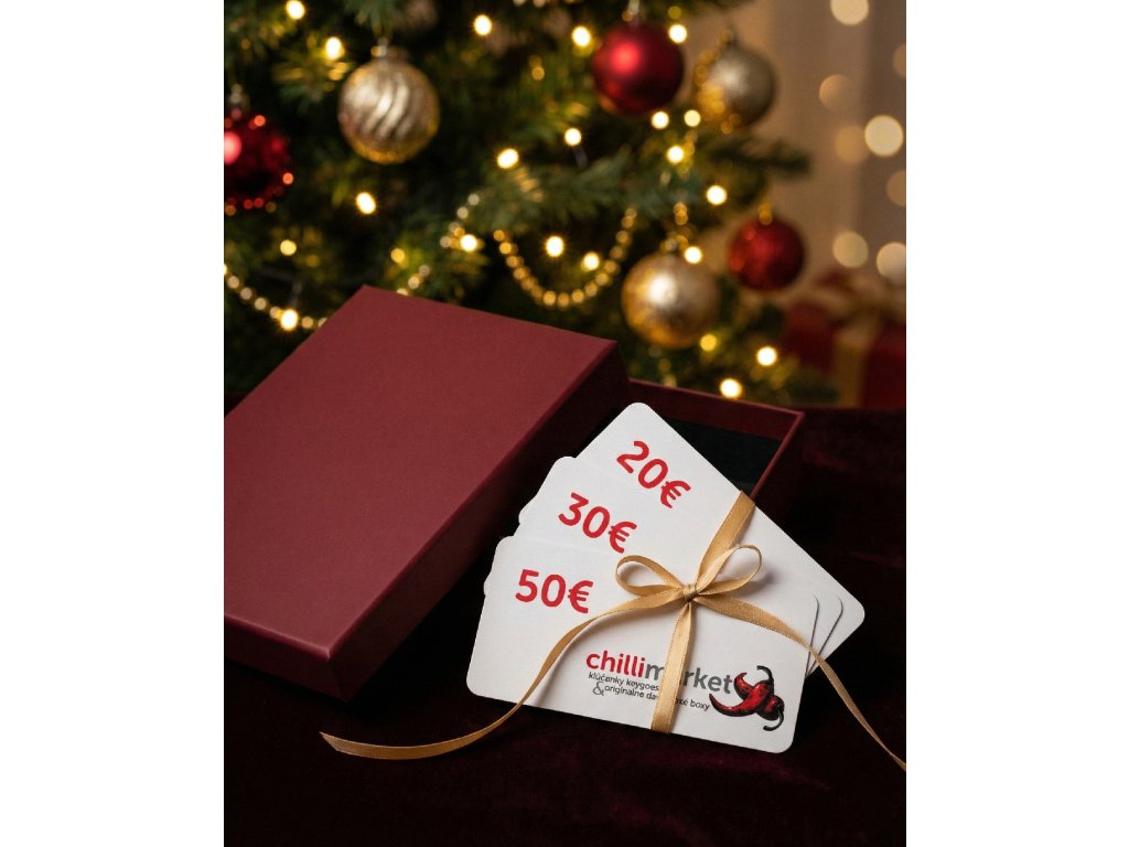 Darčekový poukaz na nákup na chillimarket.sk. Ideálny darček pre milovníkov chilli, pikantných chutí a originálnych drobností.