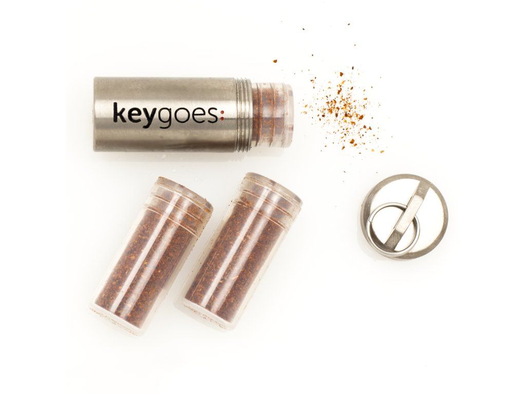 - našu titánovú mini kľúčenku KEYGOES:CHILI so 4 náplňami: