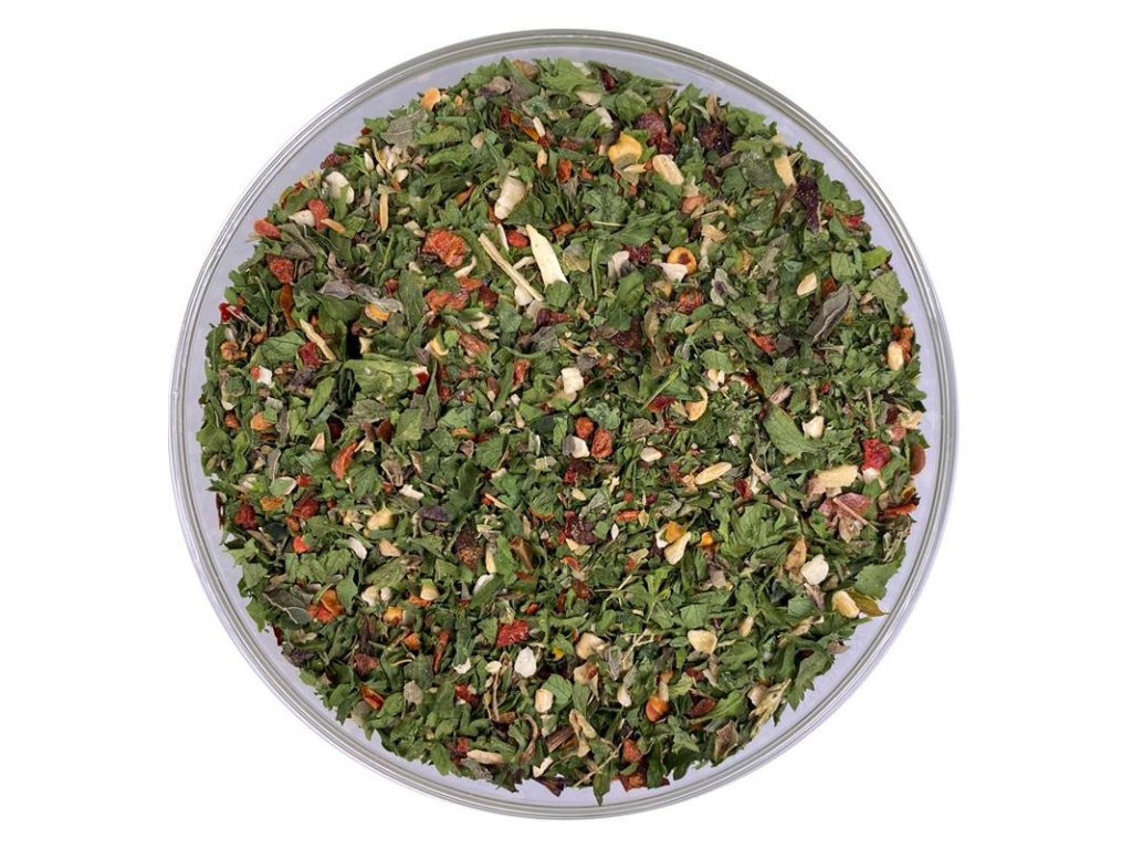 Zloženie: bio petržlenová vňať, organický cesnak, bio paprika, bio čierne korenie, bio údená cibuľa - Údená cibuľa (bio cibuľa, dym), organické paradajky, organické oregano, organické chilli, organická mäta pieporná